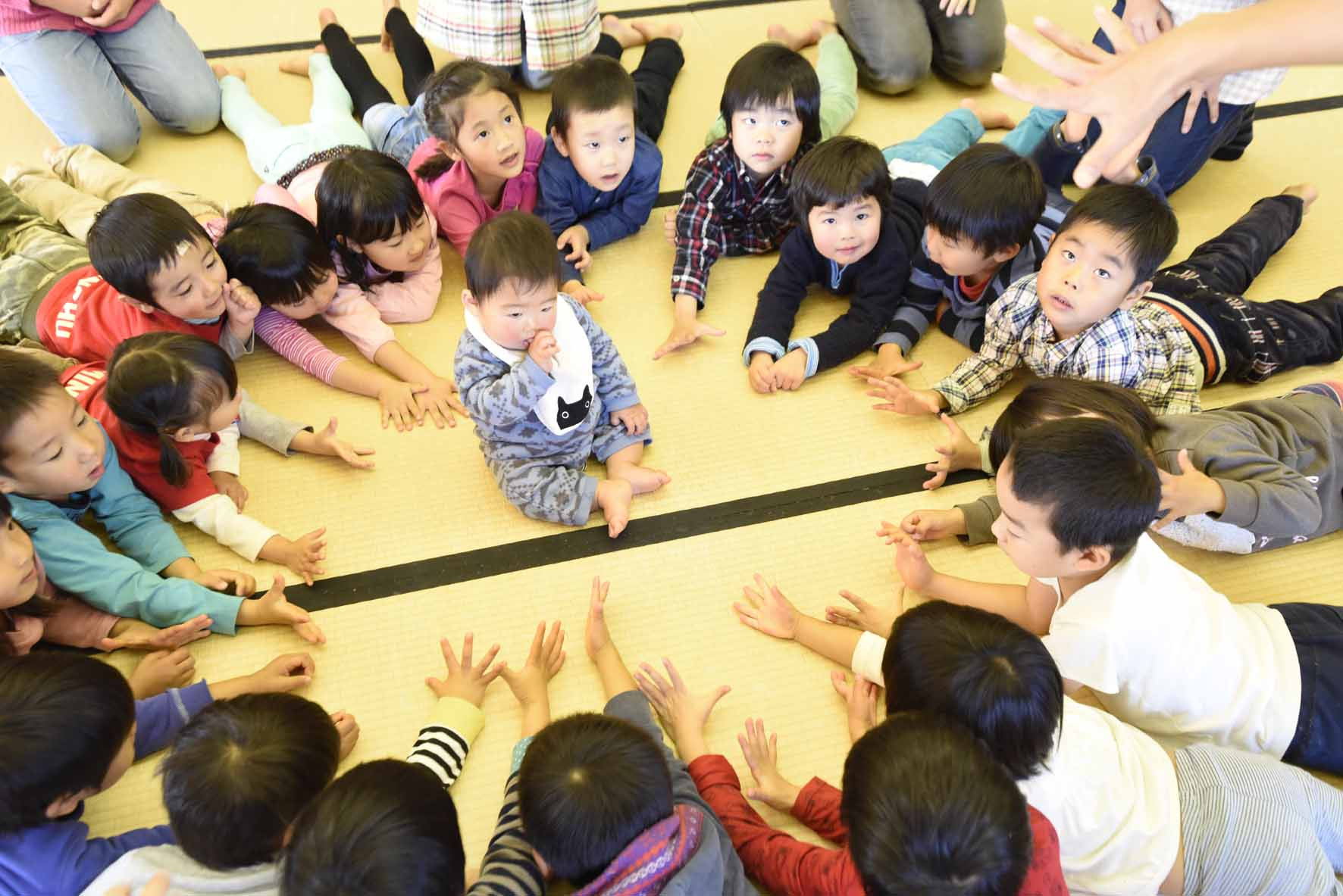 そのため屋外で「身体であそぶ」「自由にあそぶ」だけではなく、和室中心の室内の静かな環境での「母子の触れ合い」「一人一人の発達にそった手遊び」を大切にしています。