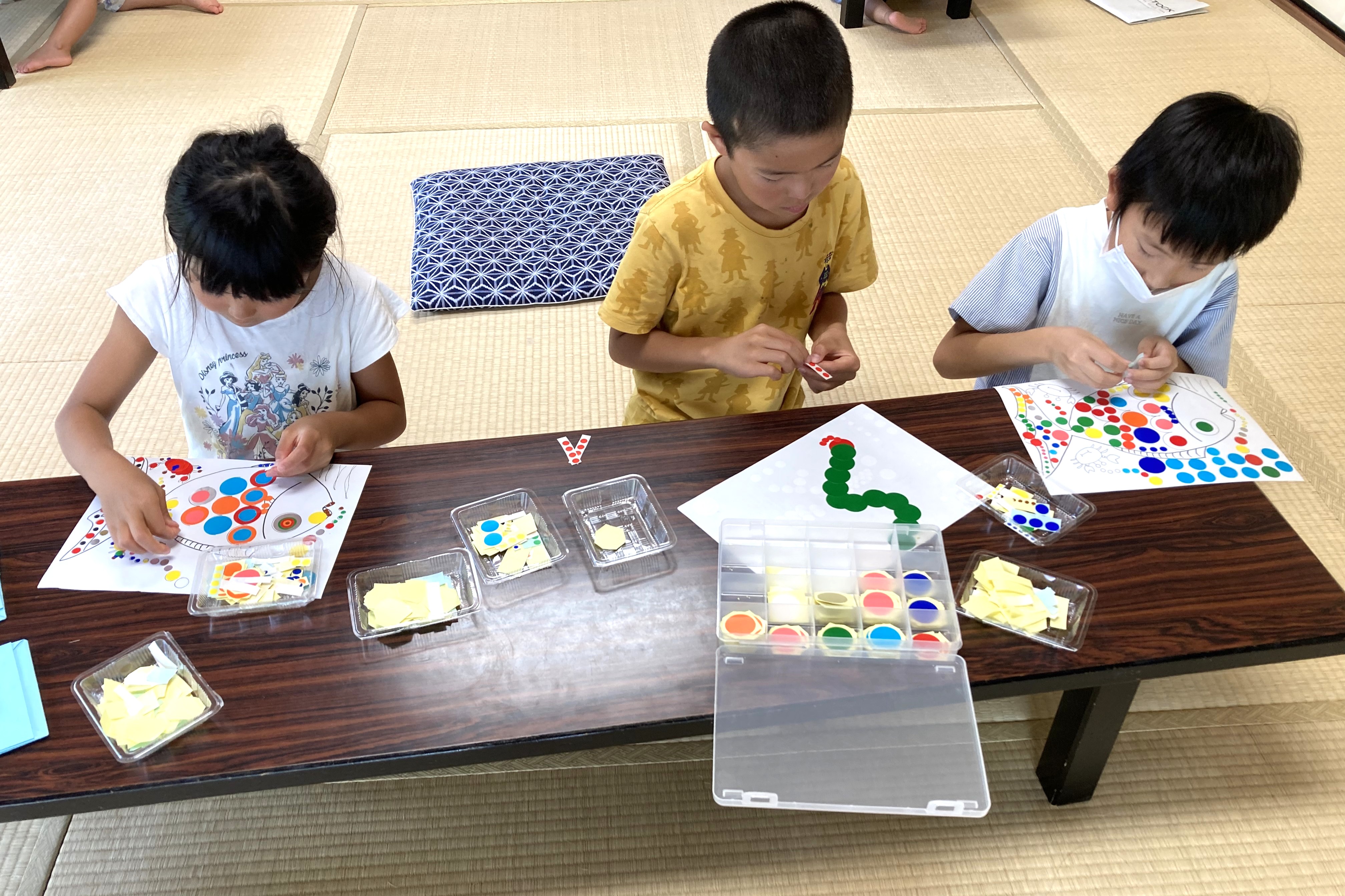 ほかにもクレヨン、ねんど、のり、ひも、音あそびなど毎回内容が変わります。